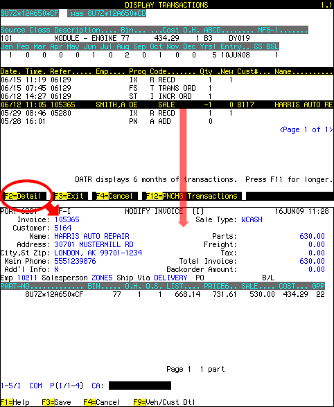 F2 puts you in the I function for open invoices instead of a display-only screen.