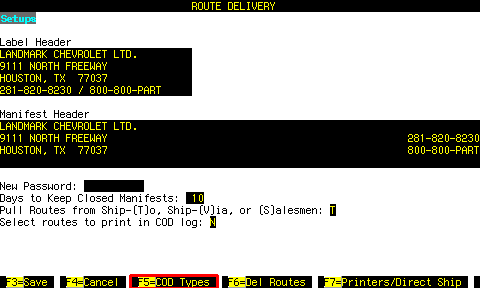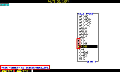 DELR - Delivery RoutesOverview Setups Add Invoices to Routes Print Open Routes (Close Manifests) Search and Display Routes Reports OPA Shiptrack Setups COD Sale Types |