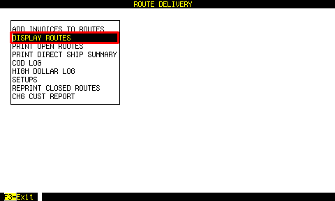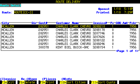 If not Out of town, it is from the program DELM (Delivery Manifest), which is intended for in town deliveries. Highlight a route, and press [F2] or [ENTER]. |