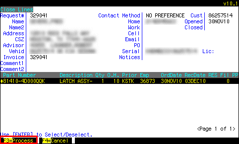 ...make sure the lines are selected that you want selected, and press F3 to process.