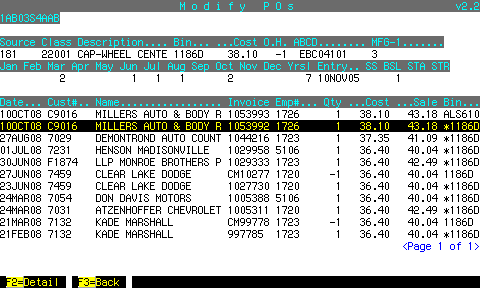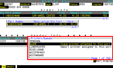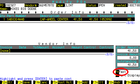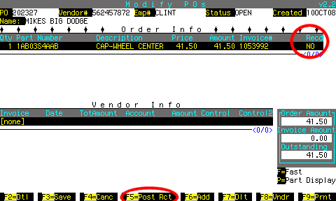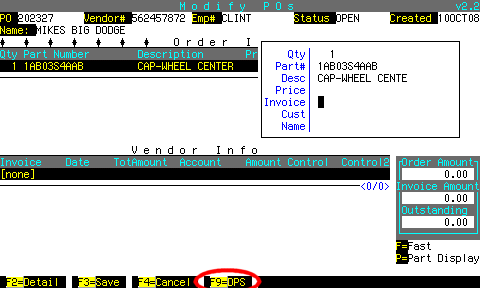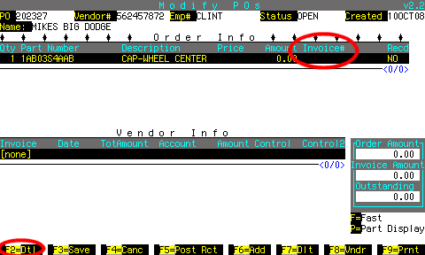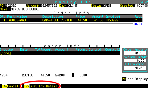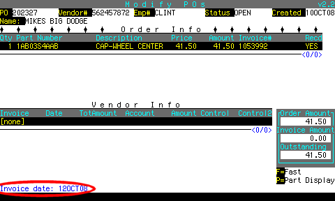 If the invoice# is not on the PO, you can find it by pressing F9 to display parts sales for this part number.