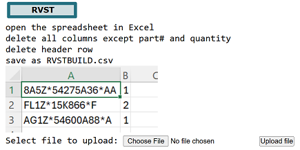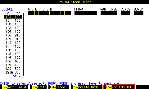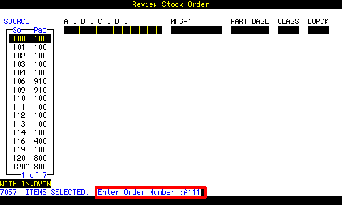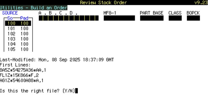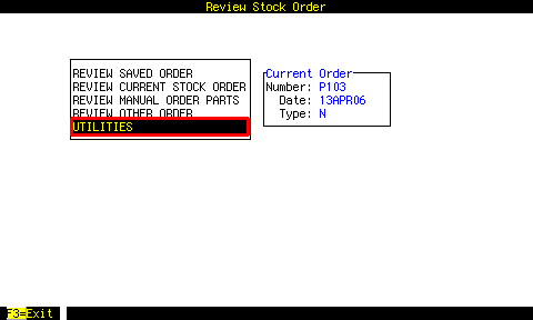 From the BUILD AN ORDER screen ( RVST | UTILITIES | BUILD AN ORDER ),