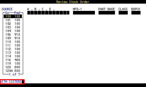 The program prompts WITH and you type SISTERS which is a dictionary item that finds part numbers in the OLDPARTS files. |