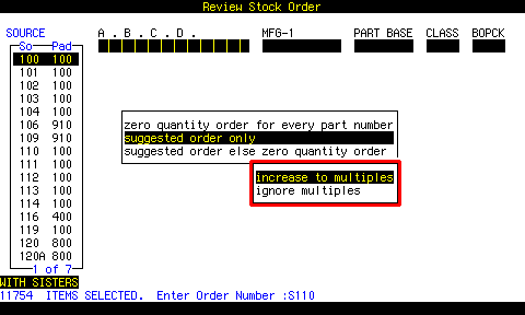 Selectingsuggested order only calculates BSL - O.H. - O.O. |