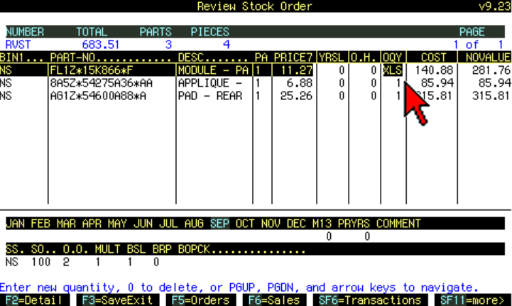 Type XLS at the cursor where you would type in a new quantity, and hit ENTER. It prompts for an email address, and sends it. |