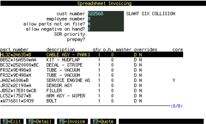 OverridesD Drop Ship N No History S=xx C=xx L=xx You can have more than one override, separated by a space, as shown here with both D and N. Enter overrides on one part number. The same override will apply to the whole list. |