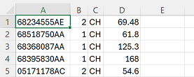 Values in column D are sell price overrides. They need to be formatted as shown here, with no dollar signs, formulas, etc. |